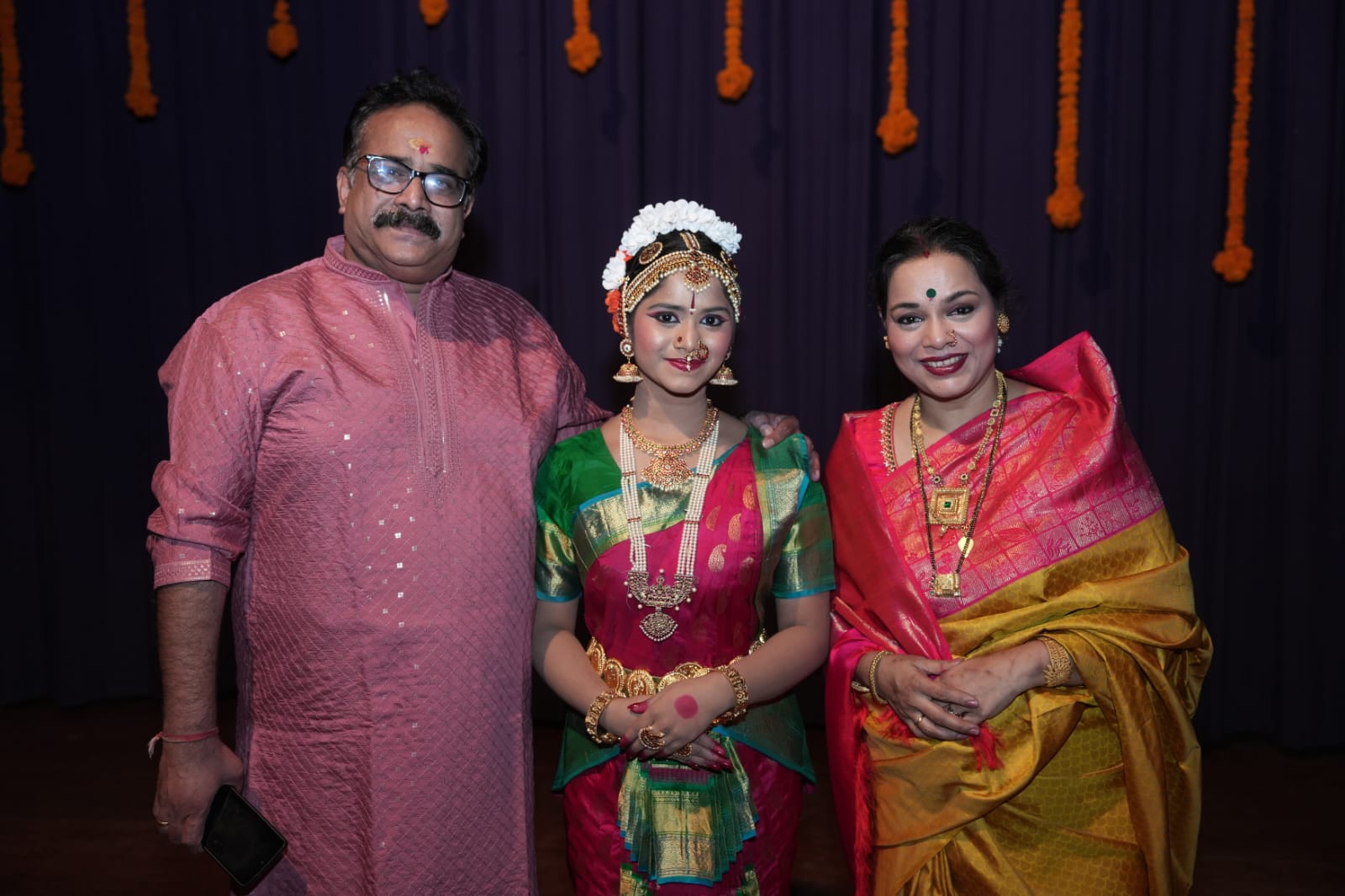 The Arangetram was attended by distinguished dignitaries including Swami Vigyananand, Founder of the World Hindu Congress and alumnus of IIT Kharagpur; noted filmmaker Padmashri Madhur Bhandarkar; Padmashri awardee Dr Chandraprakash Dwivedi; and film producer and philanthropist Good night Mohan.