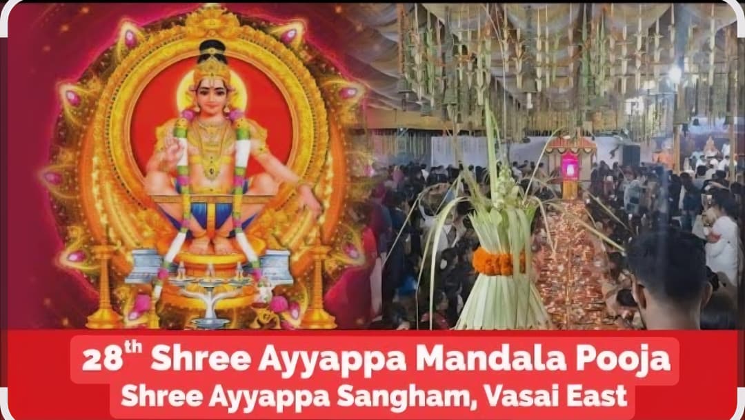 The Vasai Ayyappa Puja, organized by Sree Ayyappa Sangham Vasai East, will be held from January 2 to 4 at a specially prepared mandapam at Vasant Nagari Maidan, Vasai East.