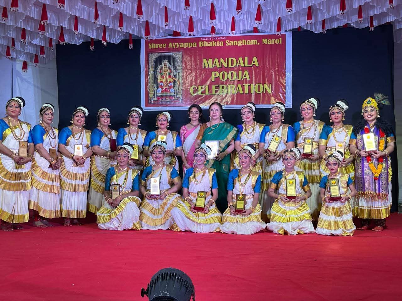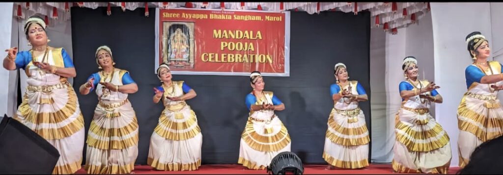 As part of the 51st Mandala Pooja Festival of the Shree Ayyappa Bhakta Sangham, Marol, disciples of renowned Mohiniyattam exponent Guru Geetha Vijayashankar presented a captivating Mohiniyattam dance performance at the Blossom Ground venue on Sunday.