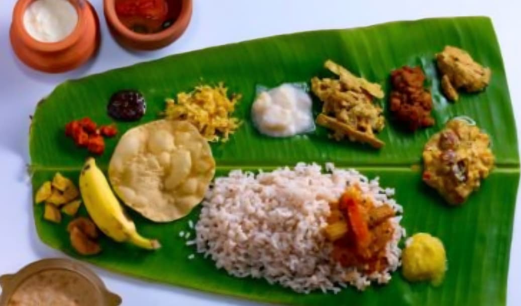 The Sadhya menu includes rice, parboiled rice, lentils, sambar, rasam, aviyal, thoran, pickles, pappadam, and payasam. Certain dishes such as aviyal and thoran will be replaced with other curries on alternate days. The menu will also feature either moru, rasam, or pulissery, along with a different variety of stew each day.