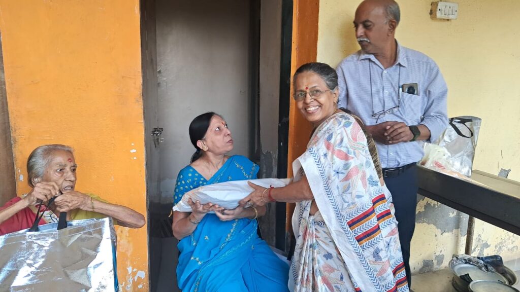 The thoughtfully curated kits included bedsheets, bath towels, pillow covers, detergent powder, bath soap, toothpaste, toothbrushes, incense sticks, calendars, biscuits, and fresh seasonal fruits. In a special gesture, sarees were presented to the women residents and shawls to the men, adding a personal touch to the celebrations.