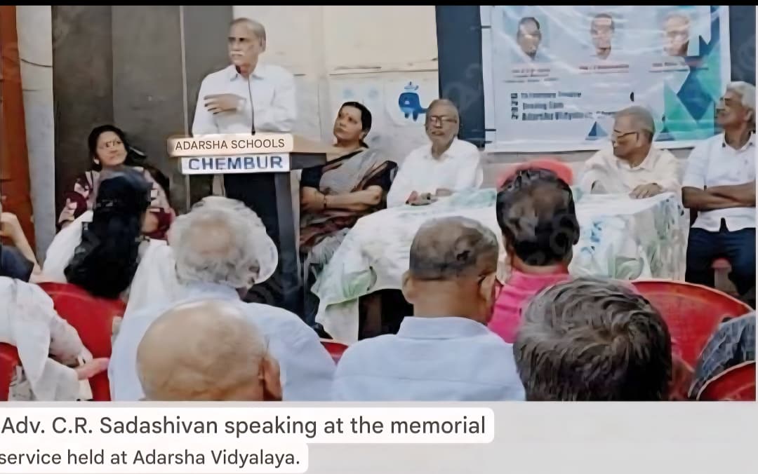 Advocate C. R. Sadashivan delivered the keynote address at the memorial service held at Adarsha Vidyalaya, highlighting the lasting legacy of the leaders and their dedicated service to the community.