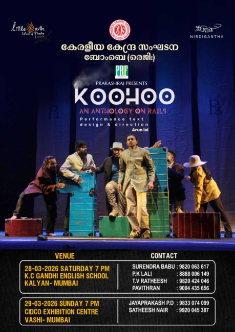 Theatre enthusiasts in Mumbai will have the opportunity to witness the acclaimed stage production “Koo’hoo – An Anthology on Rails”, presented by Prakashraj (PRF), on March 28 and 29, 2026. Designed and directed by Arun Lal, the play is a compelling anthology set against the backdrop of rail journeys, weaving together stories of human emotions, fleeting encounters and life’s unexpected moments. With strong performances, creative stage design and an engaging narrative style, the production promises a visually striking and thought-provoking theatrical experience.