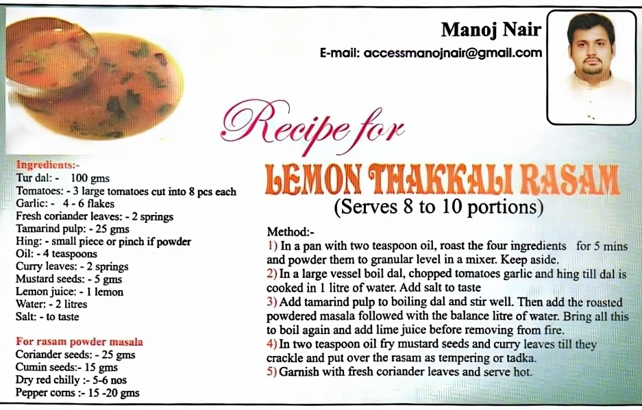 The combination of cooked toor dal, freshly ground rasam masala, and the tempering of mustard seeds and curry leaves creates a fragrant and flavorful base. The addition of lemon juice at the end enhances its freshness, giving the rasam a distinctive zesty twist that sets it apart from traditional varieties.