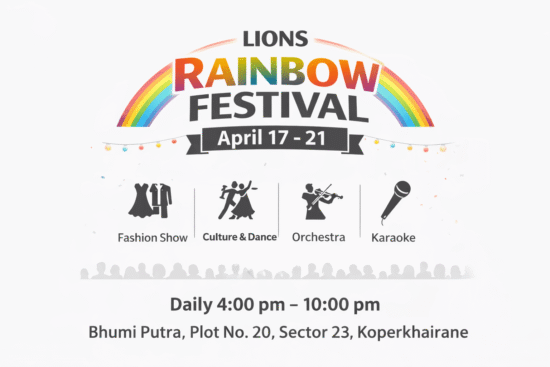The Rainbow Cultural and Healthcare Foundation is set to organise the much-awaited Lions Rainbow Festival from April 17th to 21st at Bhumi Putra, Plot No. 20, Sector 23, Koperkhairane (next to Bhumi Putra Maidan). The festival will be held daily from 4.00 pm to 10.00 pm.