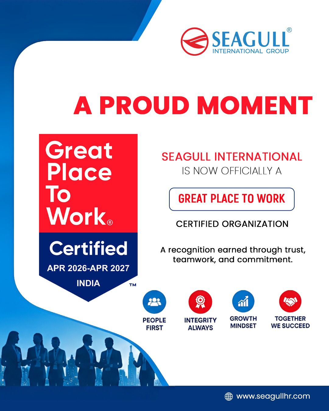 Seagull International Group has been officially recognized as a Great Place to Work® – Certified organization, marking a key milestone in its over four-decade journey in global talent acquisition and workforce mobility.